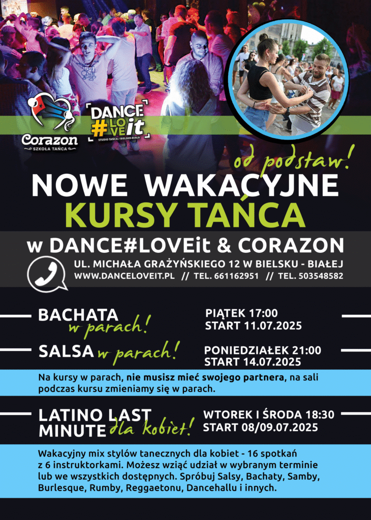 Bielsko-Biała: Salsa solo dla kobiet – nowy kurs od podstaw! Szukasz nowej pasji i aktywności tylko dla siebie? Chcesz znaleźć coś, co pozwoli Ci się zrelaksować, rozruszać ciało i naładować pozytywną energią po pracy? A może marzysz, by odkryć w sobie kobiecość, pewność ruchu i rytm, który doda Ci odwagi w codziennym życiu? Jeśli tak […]
