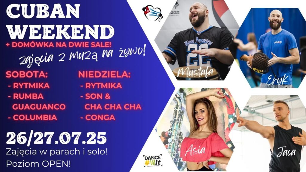 CUBAN WEEKEND z muzyką na żywo – 26/27.07.2025 – goście specjalni Eryk i Mustafa, warsztaty level up dla Salseros oraz DOMÓWKA na dwie sale – Salsa i Bachata