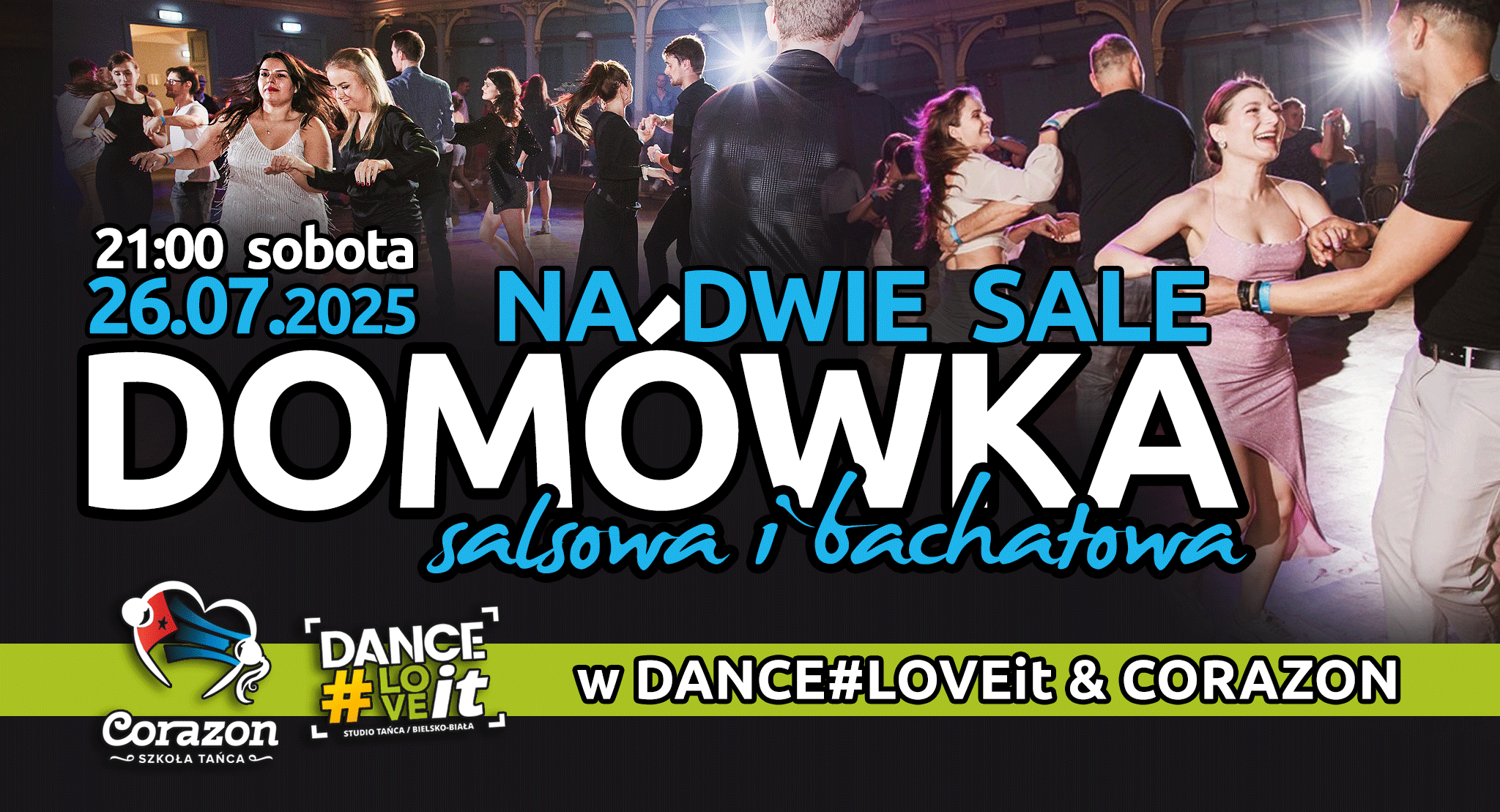 🔥 26.07.2025 – 21:00 – DOMÓWKA NA DWIE SALE w siedzibie naszej szkoły – SALSA na sali 1 oraz BACHATA/KIZOMBA na sali 2