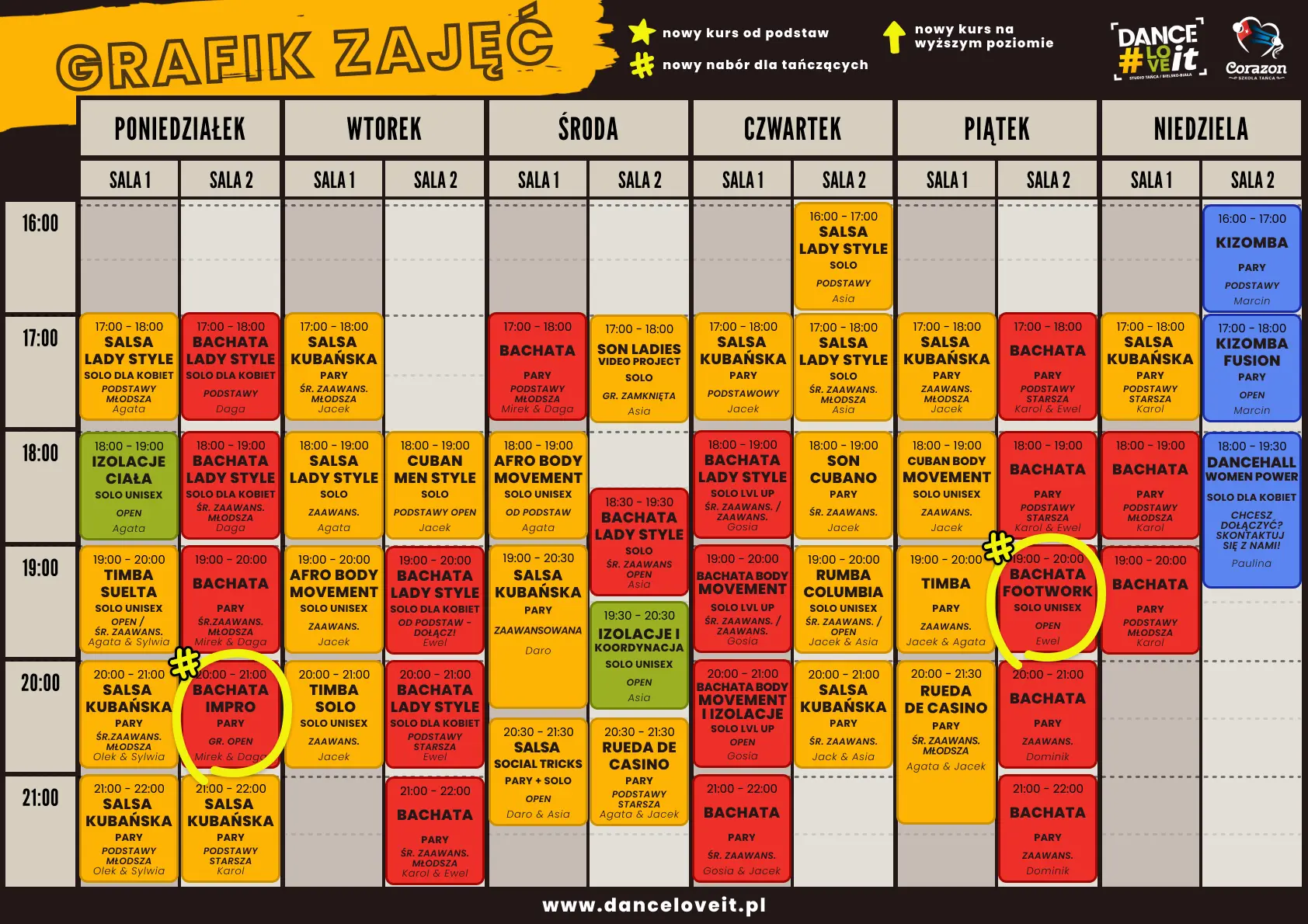 Grafik zajęć tanecznych | DANCE#LOVEit & Corazon Bielsko-Biała