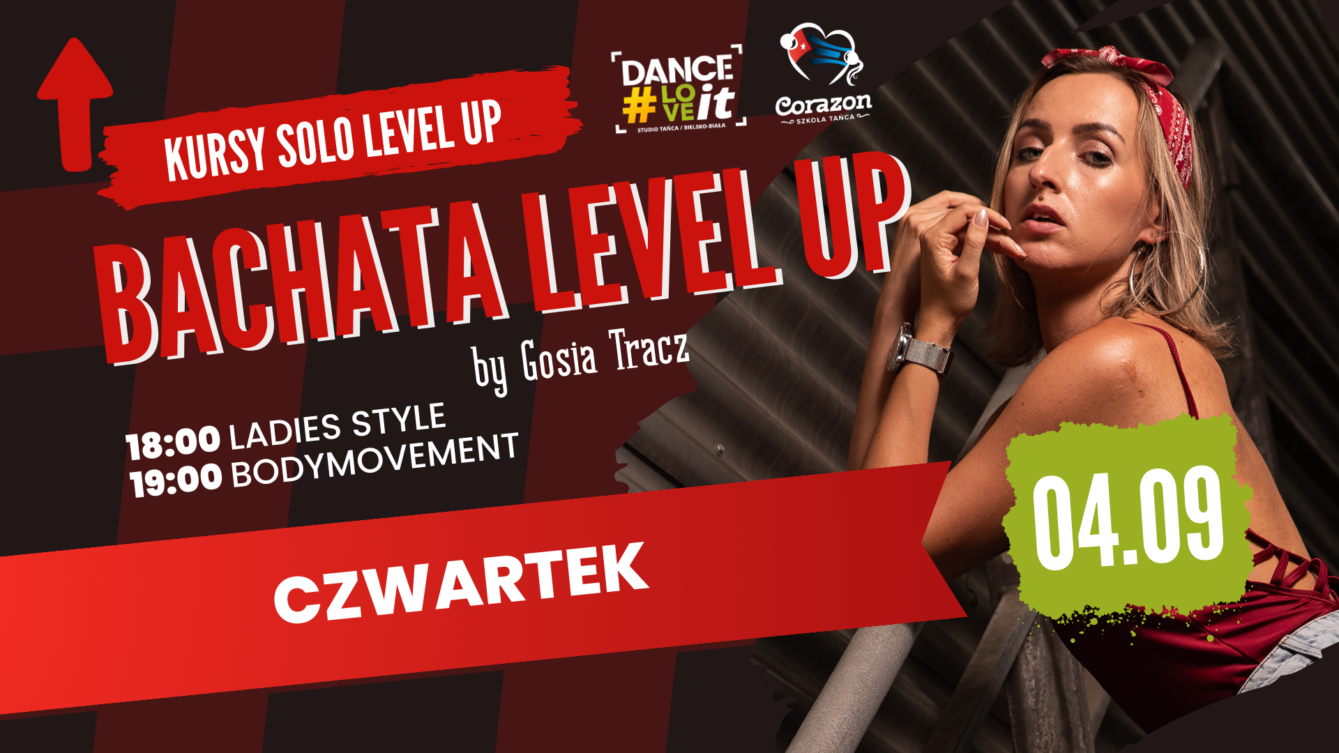 - BACHATA LADY STYLE – LEVEL UP ZAAWANSOWANY – dla dziewczyn tańczących Bachatę, rozwój techniki i ładny wygląd w Bachacie // czwartek 18:00 // start od 04.09.2025 – instruktorka Gosia Tracz