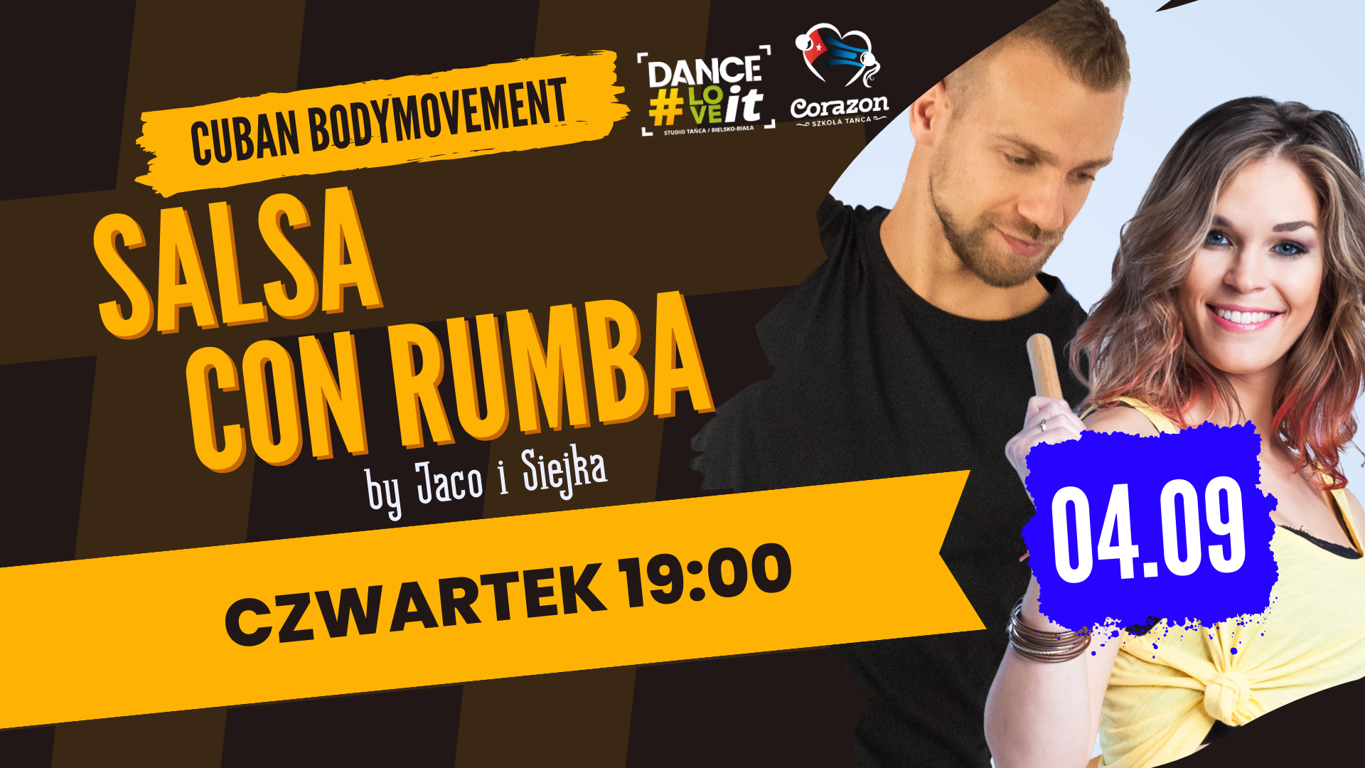 ——————————————————————— - SALSA CON RUMBA – POZIOM OPEN / PODSTAWY ale należy znać bazowe kroki Salsowe – zajęcia w ramach czwartkowego cyklu CUBAN BODYMOVEMENT tańców kubańskich // czwartek 19:00 // start od 04.09.2025 // instruktorzy Asia Sieja i Jacek Ratuszyński