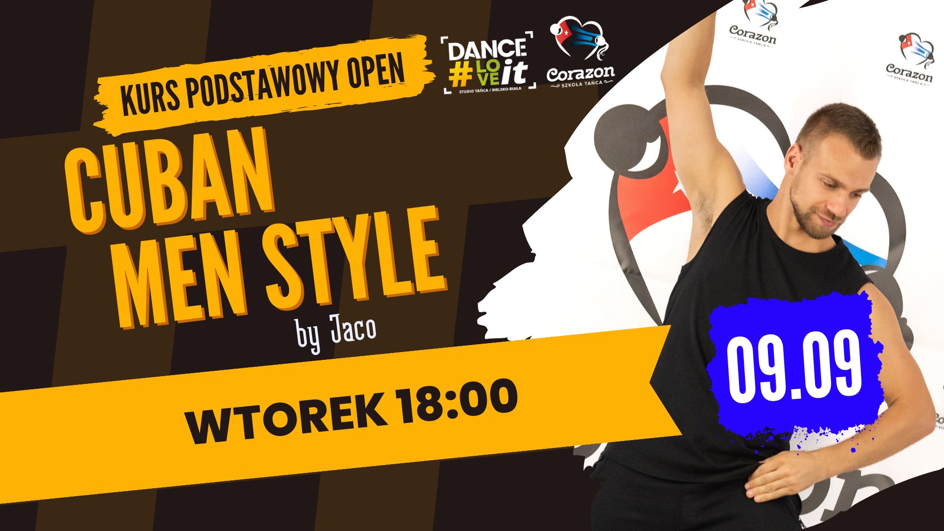 - CUBAN MEN STYLE – POZIOM OPEN / PODSTAWY ale należy znać bazowe kroki Salsowe – kurs szlifujący męski bodymovement, technikę i wygląd w Salsie i w Rumbie, wtorek 18:00 // start od 09.09.2025 // instruktor Jacek Ratuszyński