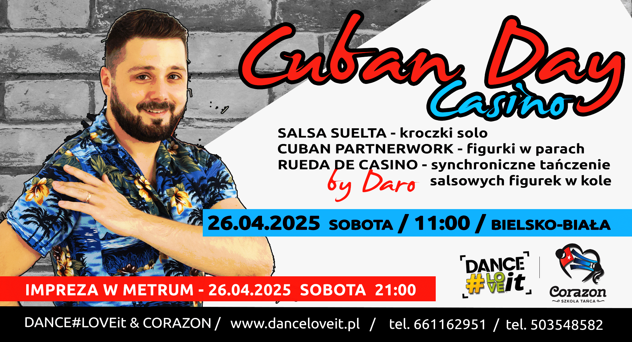 CUBAN DAY CASINO – czyli 3h SALSY solo i w parach LEVEL UP z Darkiem Gruszczykiem w Bielsku-Białej
