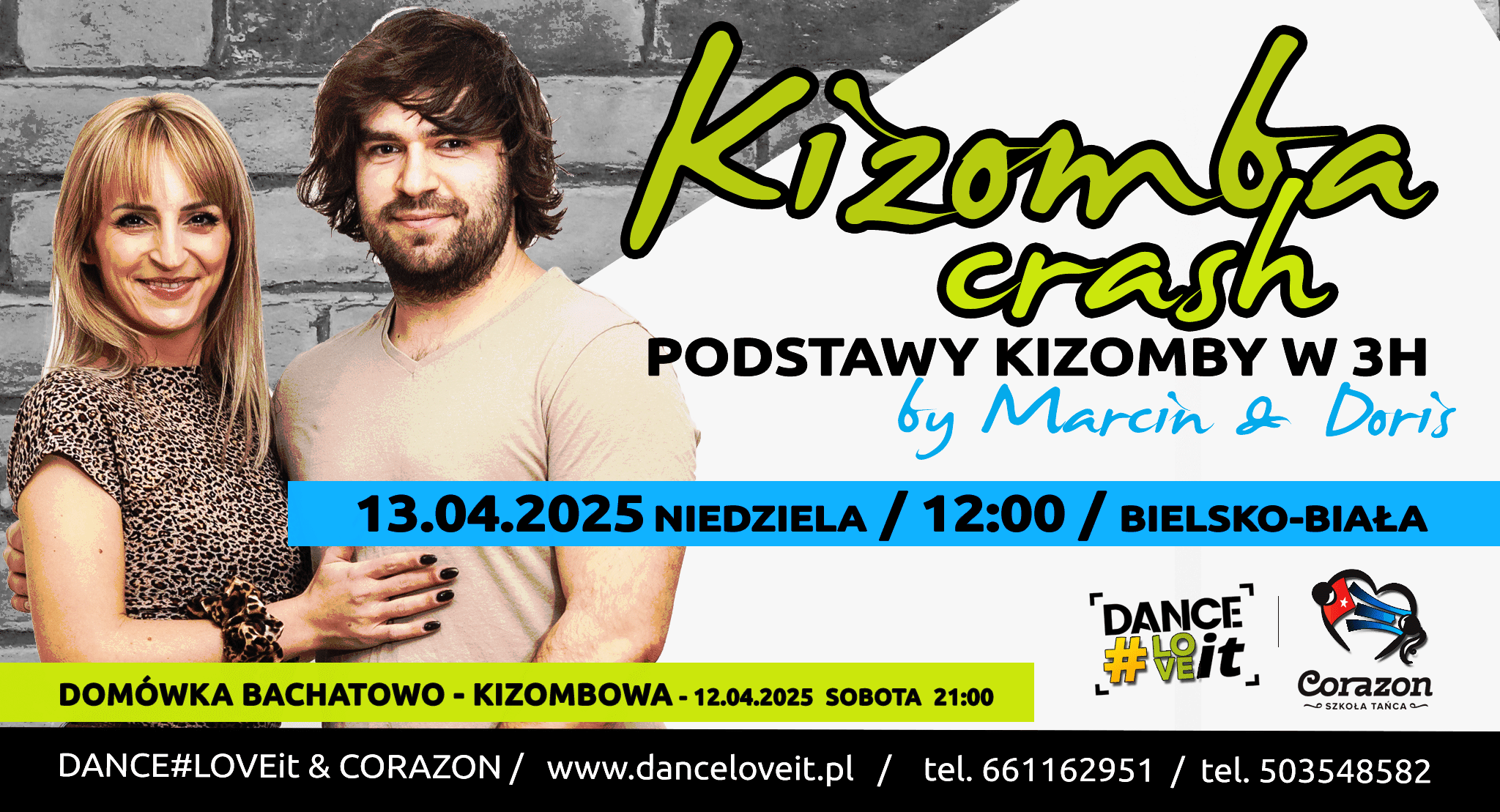 13.04.2025 w niedzielę zapraszamy na szybkie warsztaty KIZOMBY OD PODSTAW, które poprowadzi dla Was instruktorska para – Dorota Masny i Marcin Filapek! To będzie 3h ...