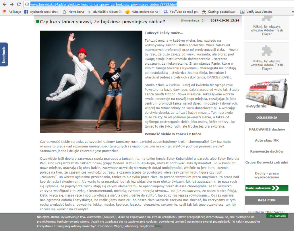 Czy kurs tańca wpływa na poziom pewności siebie i na poczucie własnej wartości? Na te i inne pytania znajdziesz odpowiedź w artykule zamieszczonym na beskidzka24.pl – portalu kulturalno – informacyjnym, wydawcy np. Kroniki Beskidzkiej. Artykuł powstał przy współpracy ze studiem DANCE#LOVEit. ARTYKUŁ https://www.beskidzka24.pl/artykul,czy_kurs_tanca_sprawi_ze_bedziesz_pewniejszy_siebie,59733.html I tak Kochani – jak najbardziej – branie regularnego udziału w kursach i zdobywanie […]